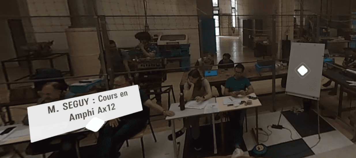 The game takes place in real university locations recreated using 360° video, filmed on-site with a camera mounted on a remotely controlled robot. Players navigate lecture halls, offices, the library, and computer rooms through interactive VR scenes.